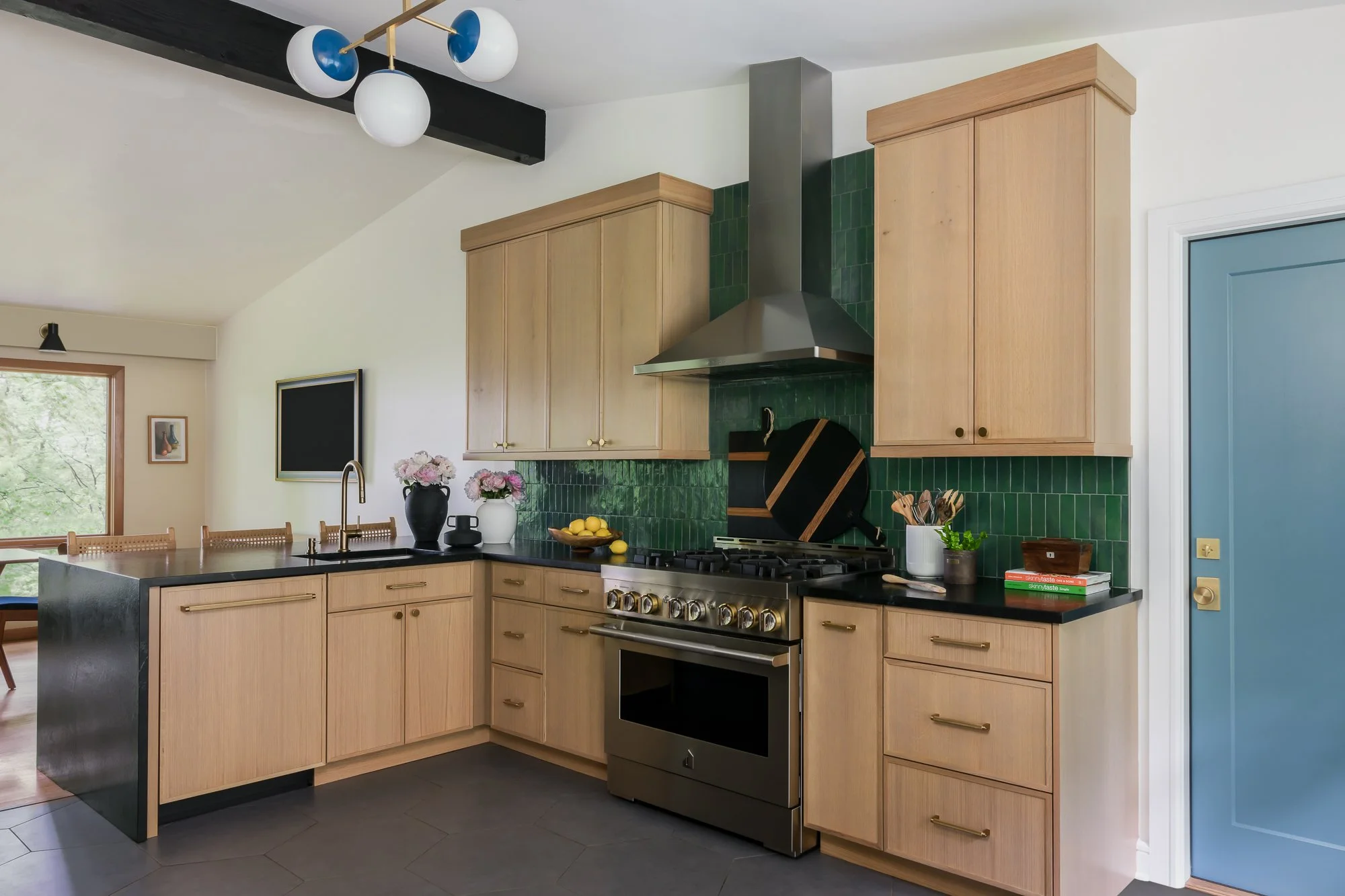 Skyline Modern Kitchen Welcome to the kitchen at Skyline Modern. After the removal of a wall and a complete gut renovation, this space now floods with natural light and truly shines. The Before.